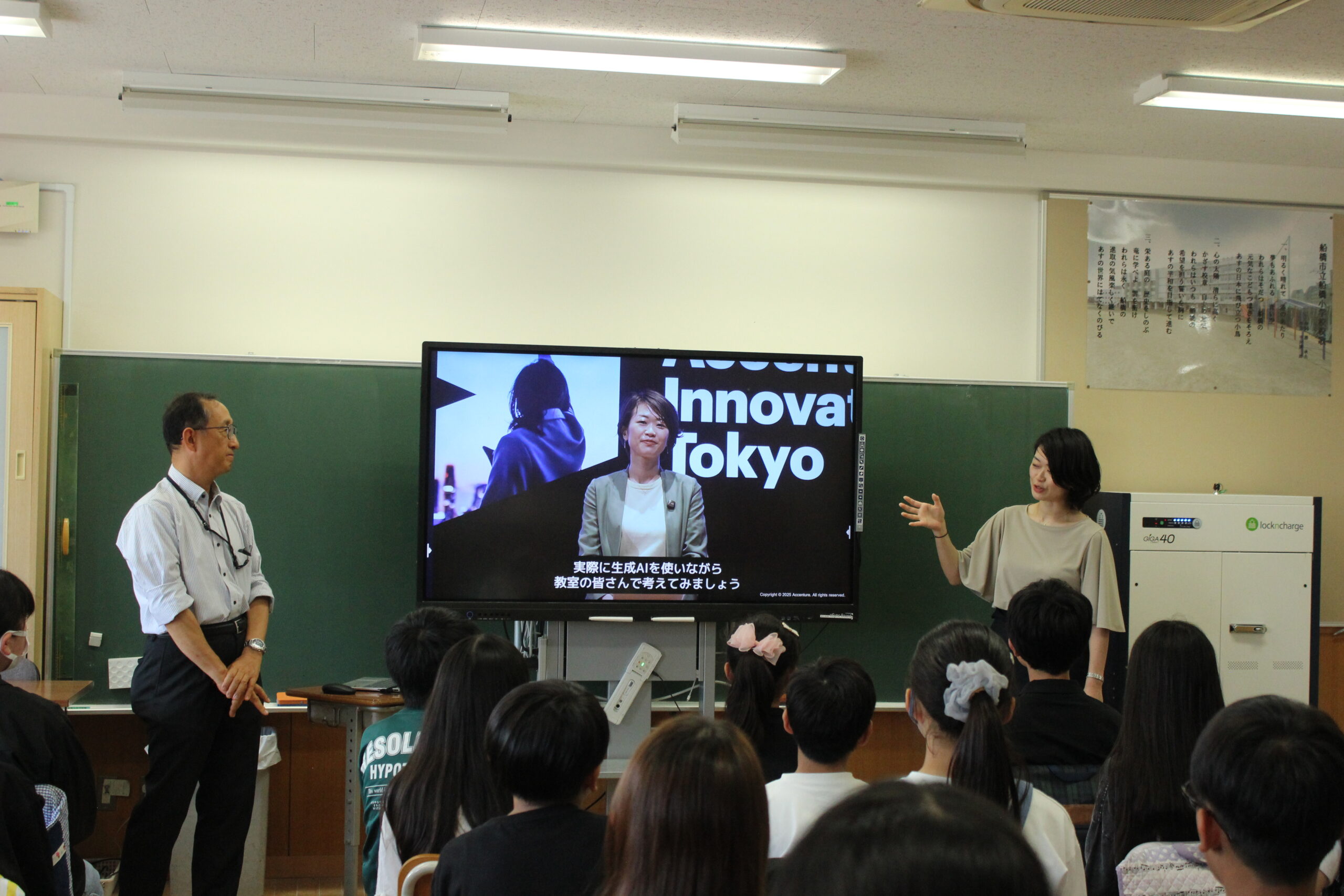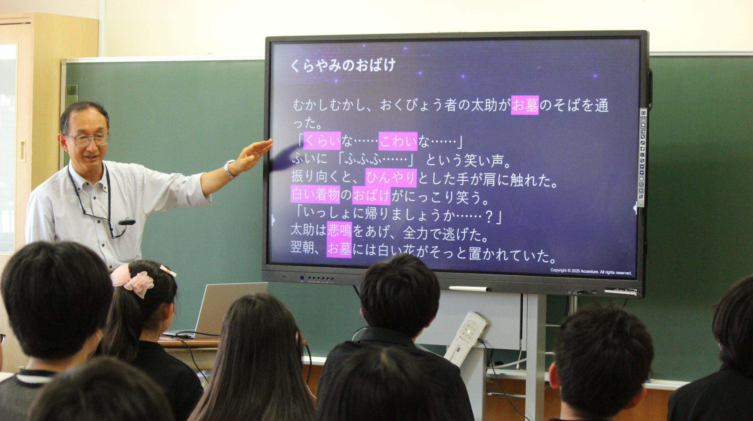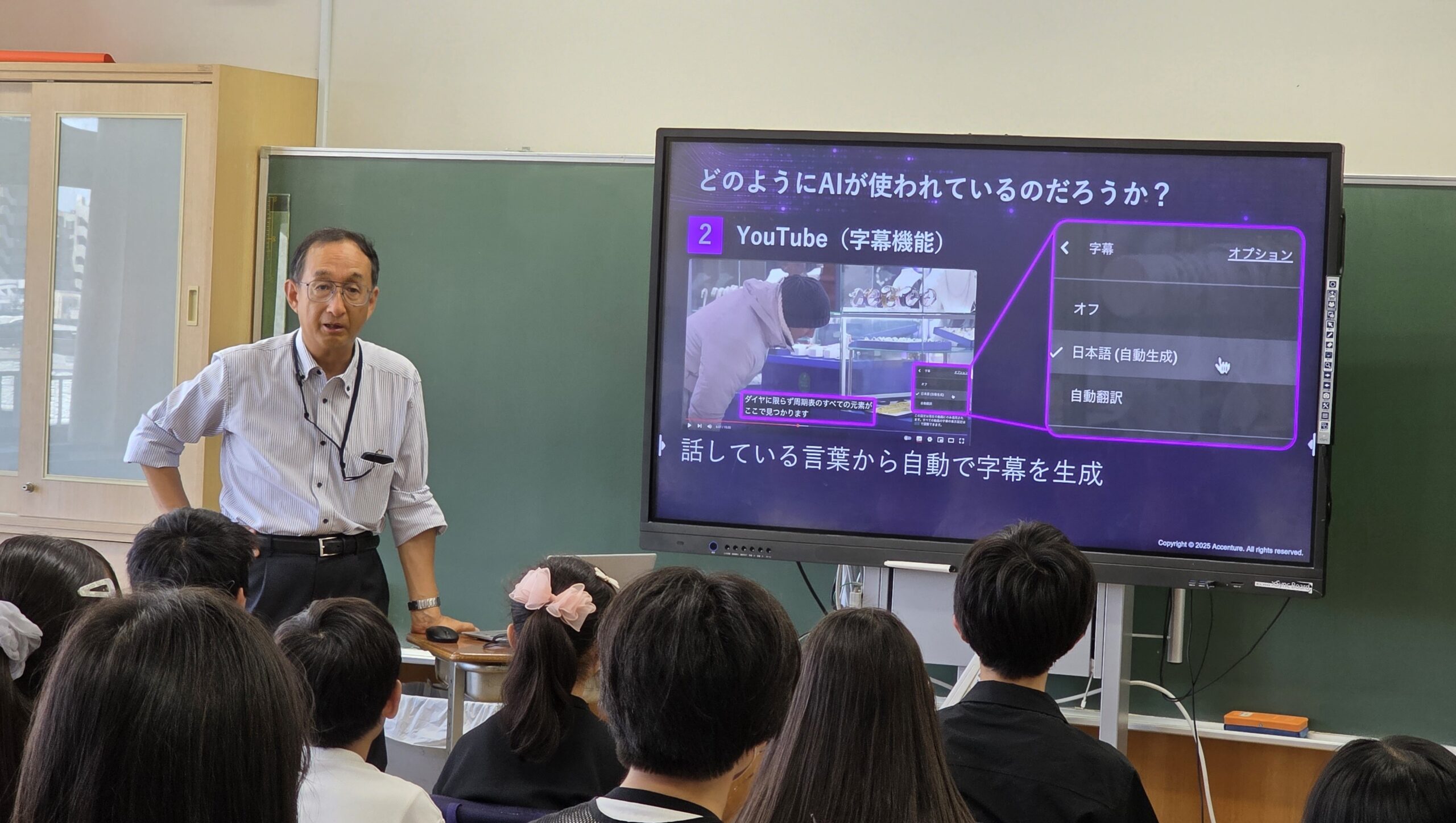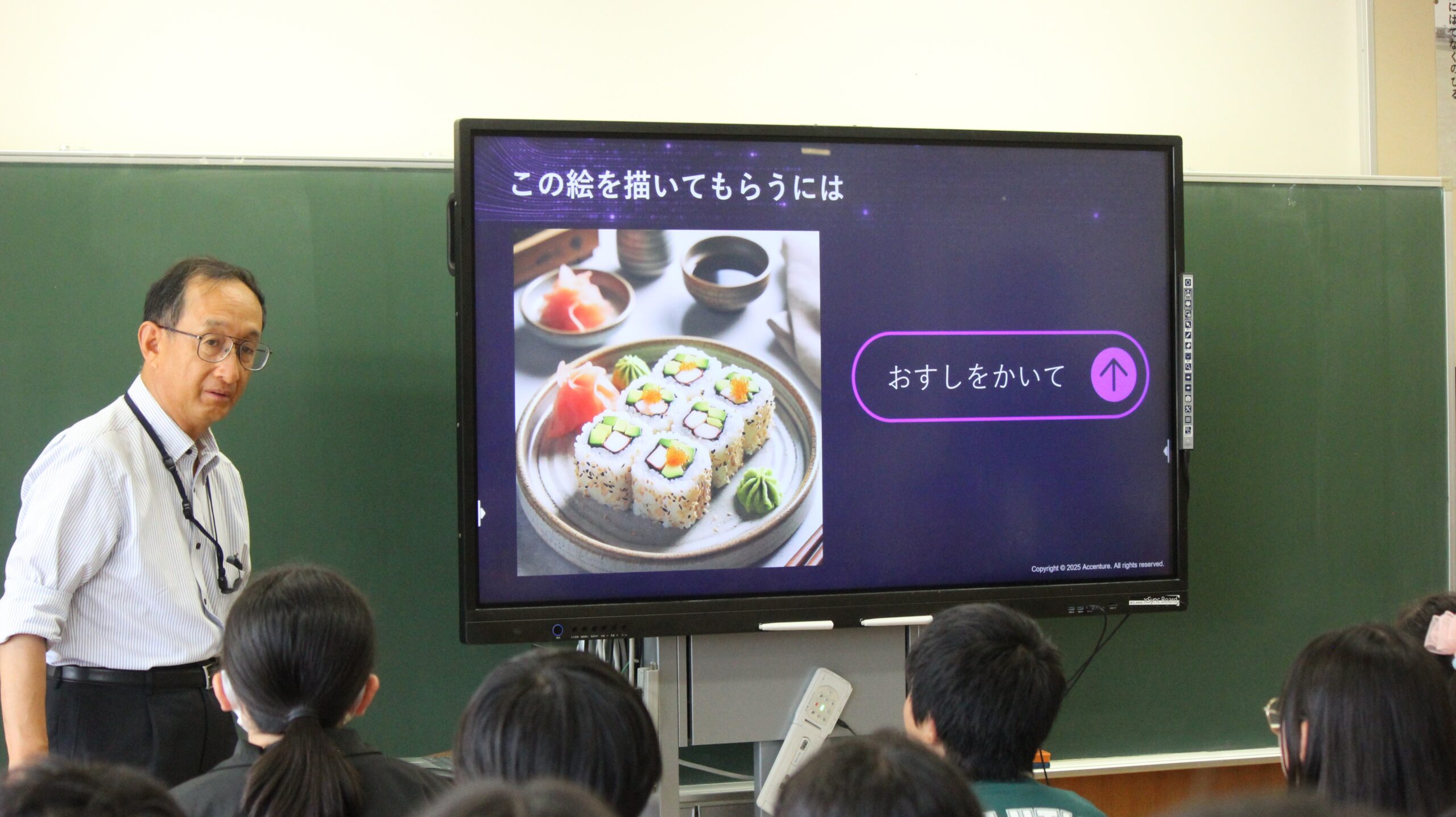 そしてこの日は、特別にビデオの中で生成AIについて説明をしているアクセンチュア社員の木寺さんが教室に!