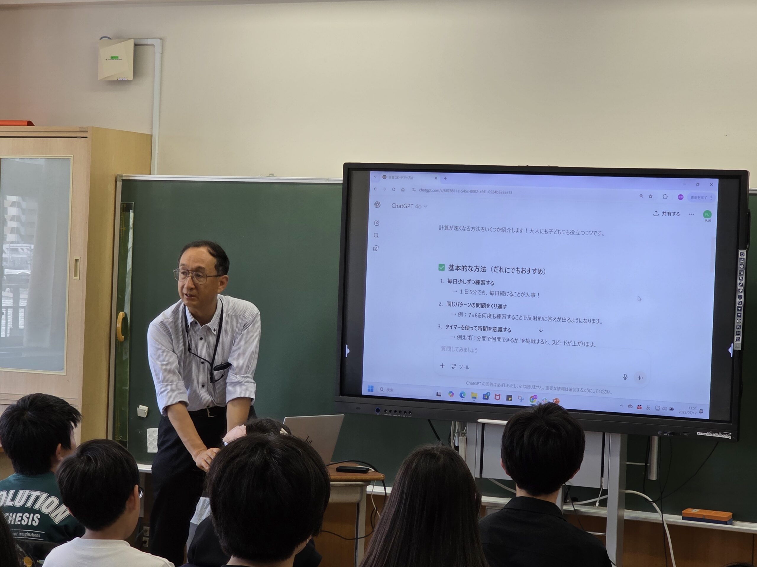 生成AIは、日進月歩の勢いで進化しています。わからないことが多くある中で、今日の授業では生成AIの仕組みや活用方法を具体的に学ぶことができました。いろいろな情報により、生成AIを使うことに不安を感じている児童も多くいる中で、どのようなことができるのか、どのようなことに注意すればよいのか、そして最終的には、自分が考え、決定する必要性があるということがわかったことと思います。我々教員も過度に恐れず、積極的に使い方を学び、一つのツールとして、効率よく仕事を進められるよう上手に活用していきたいと思います。
