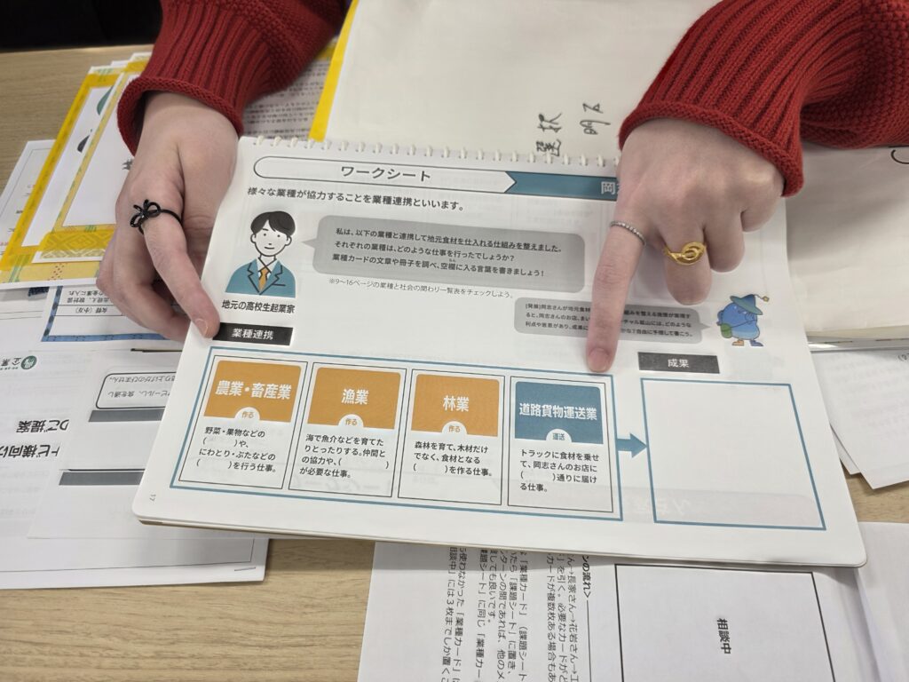 つまり、生徒が自己の知識や経験、講師のアドバイスなどをふまえつつ業種同士のつながりを考えることで、業種連携には色々なあり方が考えられることに気づくプロセスを意識しました。