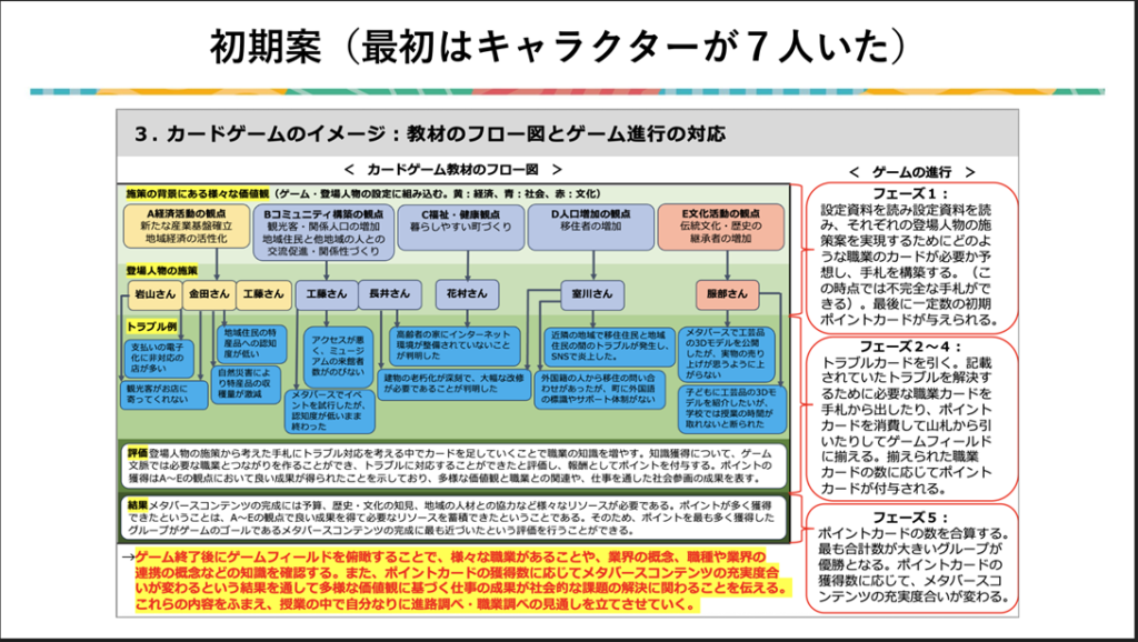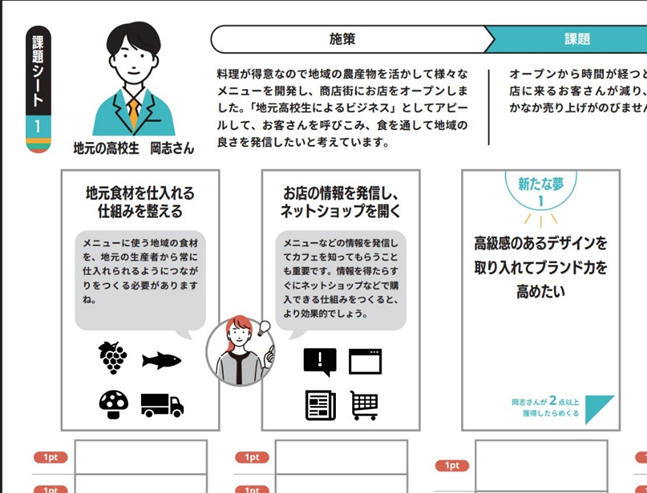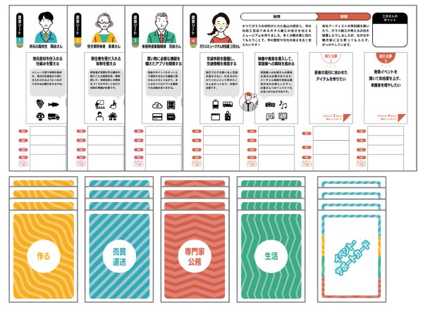 そこで、サブストーリーとして、カードゲームの登場人物は「高校生起業家」「地域活動家」「公務員」「学芸員」という設定にしました。