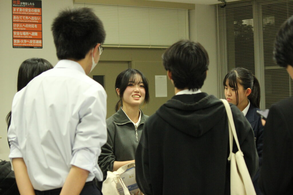 研究会準備のため、研究会開始前に集まってくれた高校生の皆さん。千葉県各地から集まってくれた初めて会う高校生同士でしたが、互いに声を掛けあい、会場はすぐに温かい雰囲気になりました。研究会がスムーズに進むように、準備や片付けといったお仕事で運営にご協力いただきました。