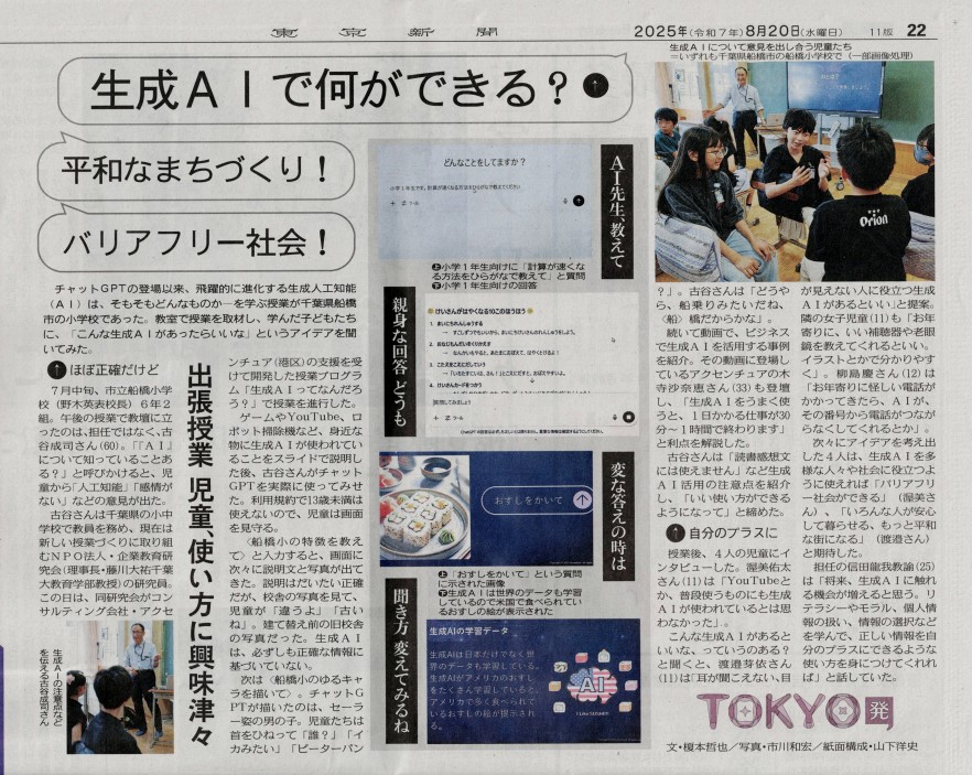 2025年7月17日(木)、船橋市立船橋小学校6年生の児童のみなさんへ、「生成AIってなんだろう?」の出張授業を実施しました。